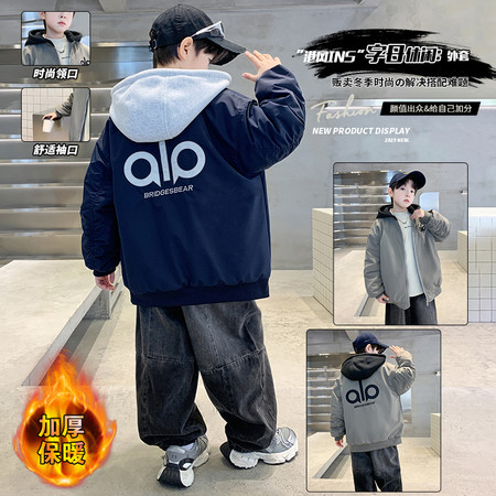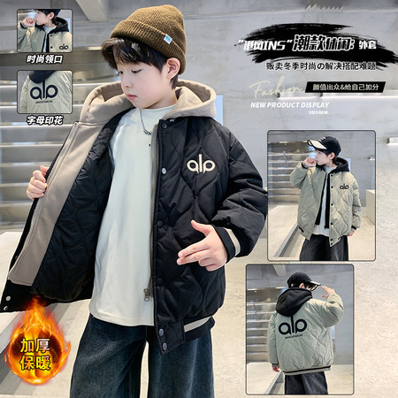 1*4收藏“9519款假两件夹棉加厚连帽外套”